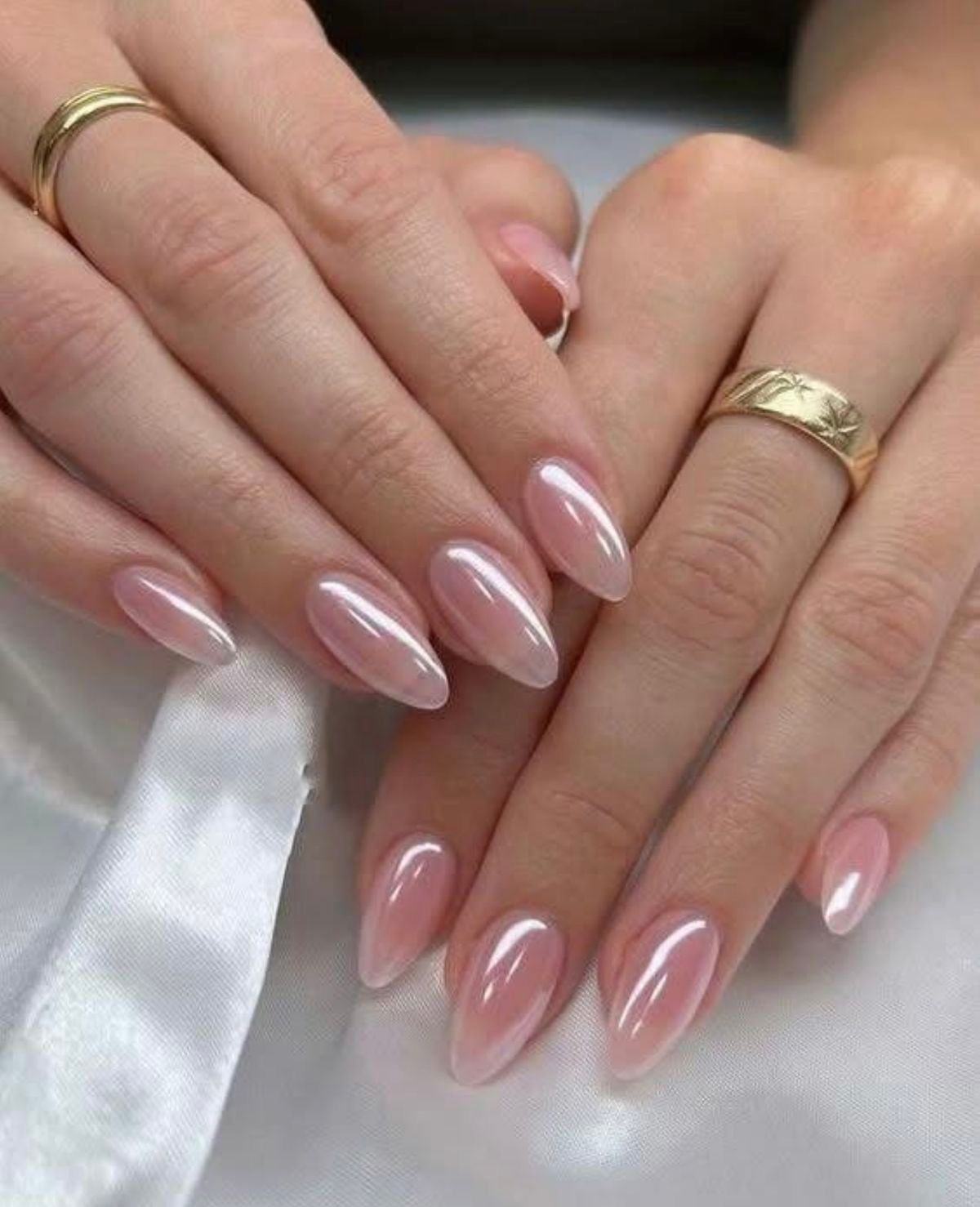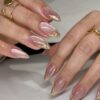 “Blush Glaze” is a delicate, almond-shaped press-on set with a semi-sheer pink base and pearlized finish. Its radiant shine and soft tone make it perfect for everyday wear, bridal looks, or formal events.